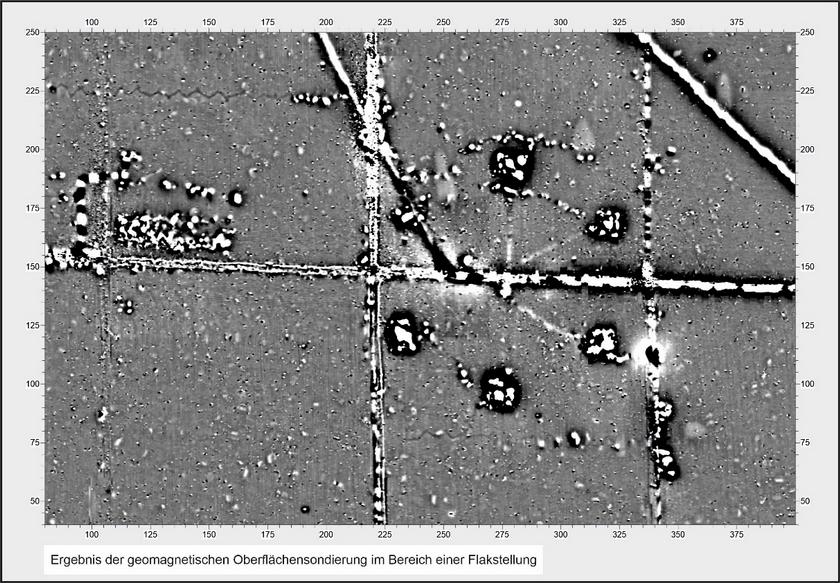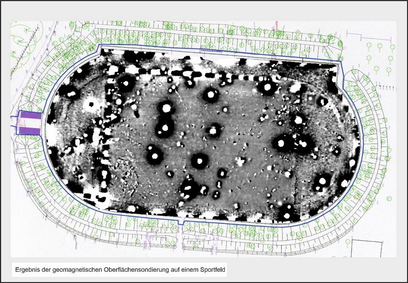 Dafür bieten wir Ihnen eine flächige geomagnetische Kartierung zur Ausweisung von Verdachtspunkten an. Die Tiefenreichweite bei dieser Oberflächendetektierung beträgt abhängig von den Gegebenheiten vor Ort bis zu 3,50 m – 5,00 m. In speziellen Fällen kommt ein elektromagnetisches Verfahren (TDEM) zum Einsatz; hier beträgt die Tiefenreichweite etwa 2,00 bis 2,50 m.